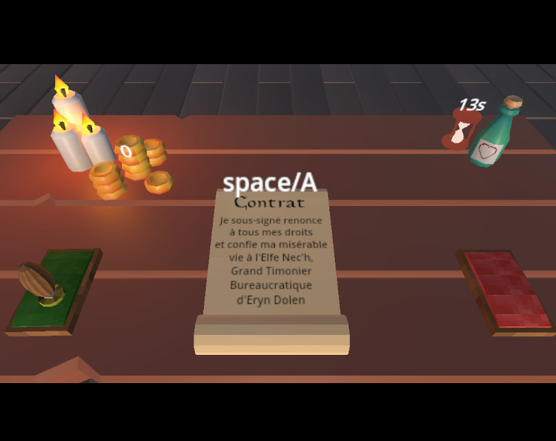 Touche "espace" pour valider et appliquer le tampon, touches "a" et "e" pour imprégner les tampons de vert ou de rouge. Touche "z" pour manger le gâteau.